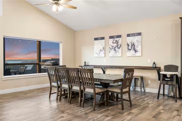 Dining Room and Living Room. Dining table seats ten. Sliding glass door to the upper deck. Plenty of windows for viewing Table Rock Lake.
