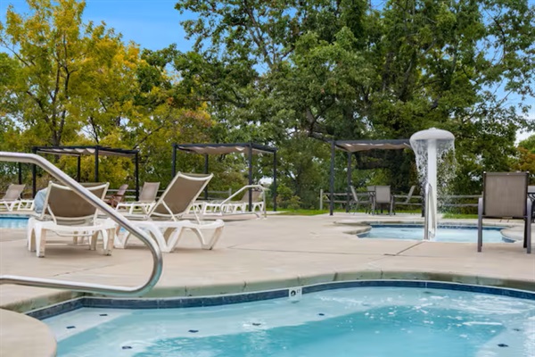 Great view of the sunset behind the Ozark hills from the seven-person hot tub.